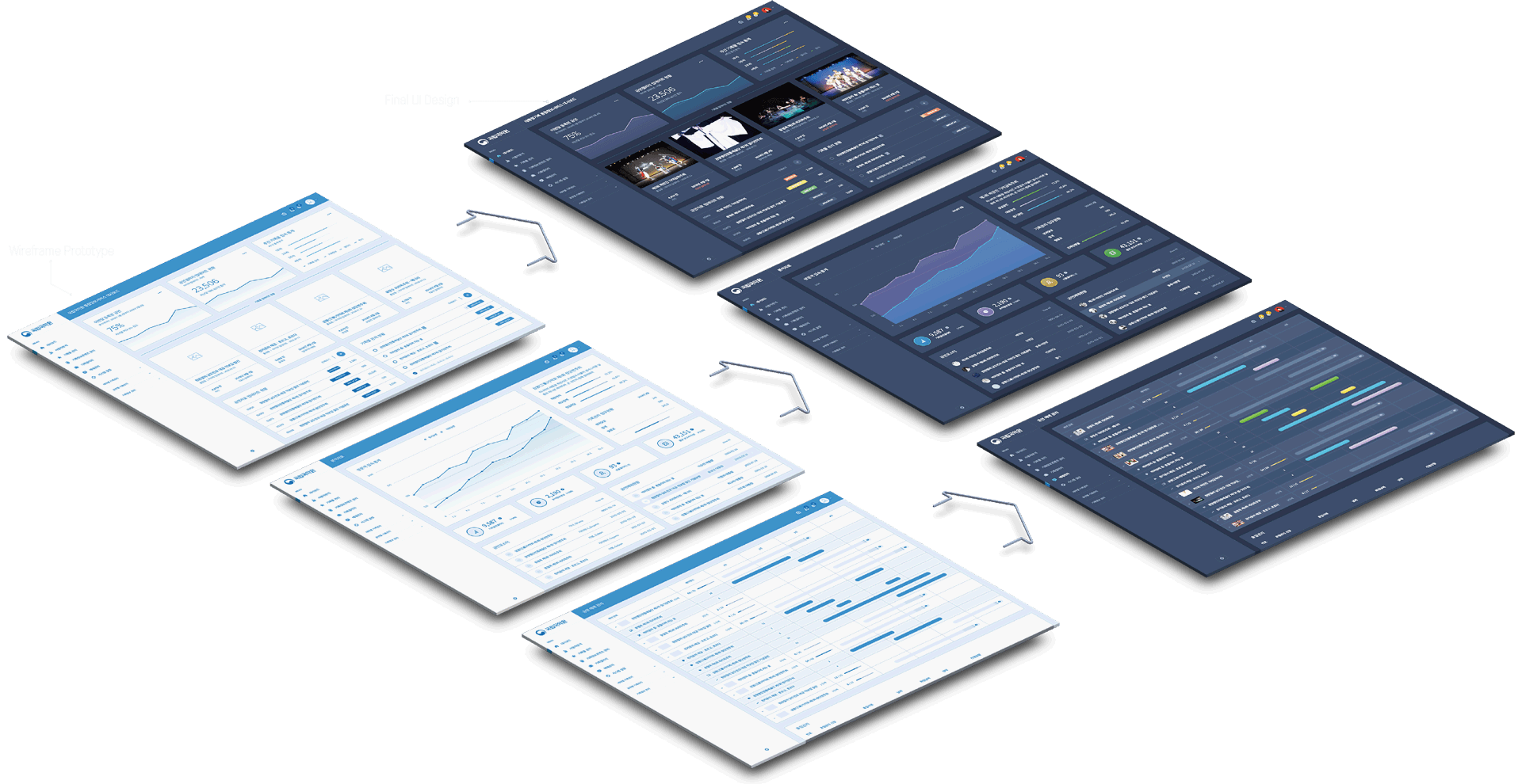 관리자가 효율적인 업무를 수행하기 위해서 사용자 경험에 의한 UI/UX 디자인 구현UI설계시 Wireframe Prototype을 통해 보다 직관적인 인터페이스를 구현이를 통해 쉽게 빠르게 이해할 수 있도록 디자인을 적용하여 업무의 생산성 증대